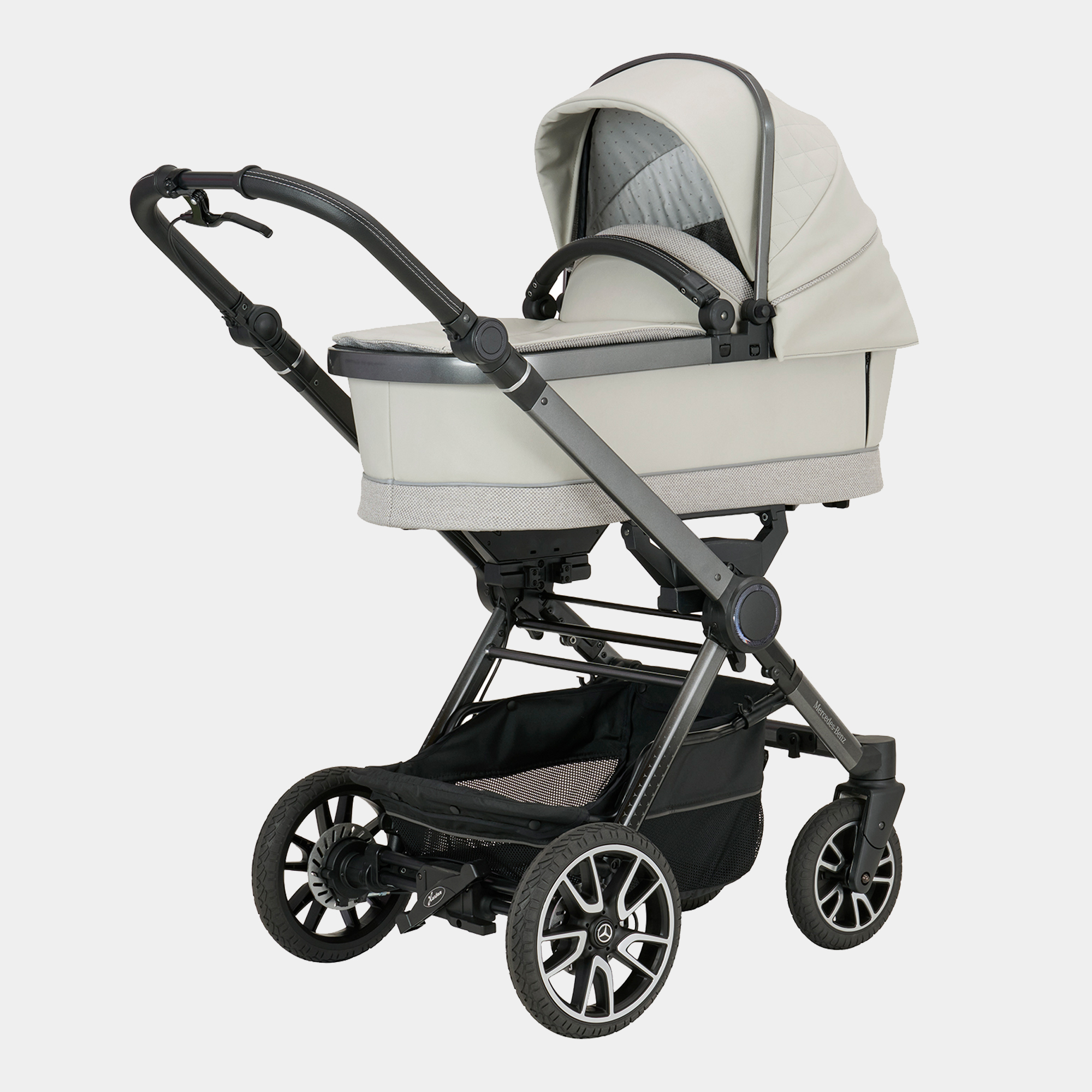 ¡Descubre el nuevo Mercedes-Benz Performance GTR! Ligero, seguro y flexible, con freno de mano de serie, asiento reversible con posición de descanso y sistema de arnés de 5 puntos para un ajuste rápido. Sus ruedas con suspensión regulable, ruedas bloqueables y manillar ajustable garantizan confort en cualquier terreno. El capazo plegable Premium, ligero y ergonómico, es ideal desde los primeros meses.